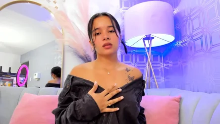 «Me siento en el sofá, con suaves cojines rosas detrás y una camisa negra que resbala por mi hombro. Miras cómo mis dedos recorren la clavícula y yo te miro, juego con mi pelo, dejando que mi sonrisa se haga lenta y un poco traviesa. ¿Te preguntas hasta dónde llegaré mientras la lámpara violeta ilumina mi piel desnuda? Me encanta provocarte en este chat privado, cada mirada invita y cada suspiro es un poco más atrevido. Quiero que desees más.»